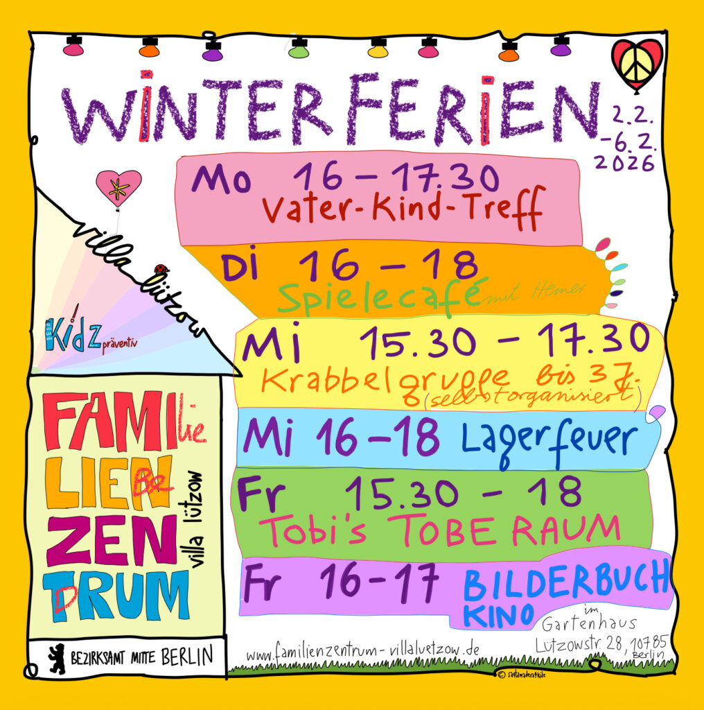 Liebe Familien, hier seht Ihr unser Programm in den Winterferien (2.2. – 6.2.2026) auf einen Blick, wir freuen uns auf Euch falls Ihr es schafft vorbeizukommen!